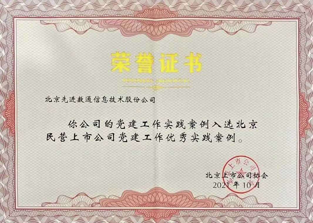 克日,北京上市公司协会授予尊龙时凯人生就是搏官网z6mg声誉证书,先进尊龙时凯人生就是搏官网z6mg党建事情实践入选北京民营上市公司党建事情优异实践案例,相关党建运动已收录在《北京民营上市公司党建事情优异实践案例汇编》。
