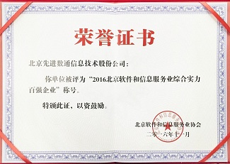 先进尊龙时凯人生就是搏官网z6mg荣获2016北京软件和信息服务业综合实力百强企业称呼